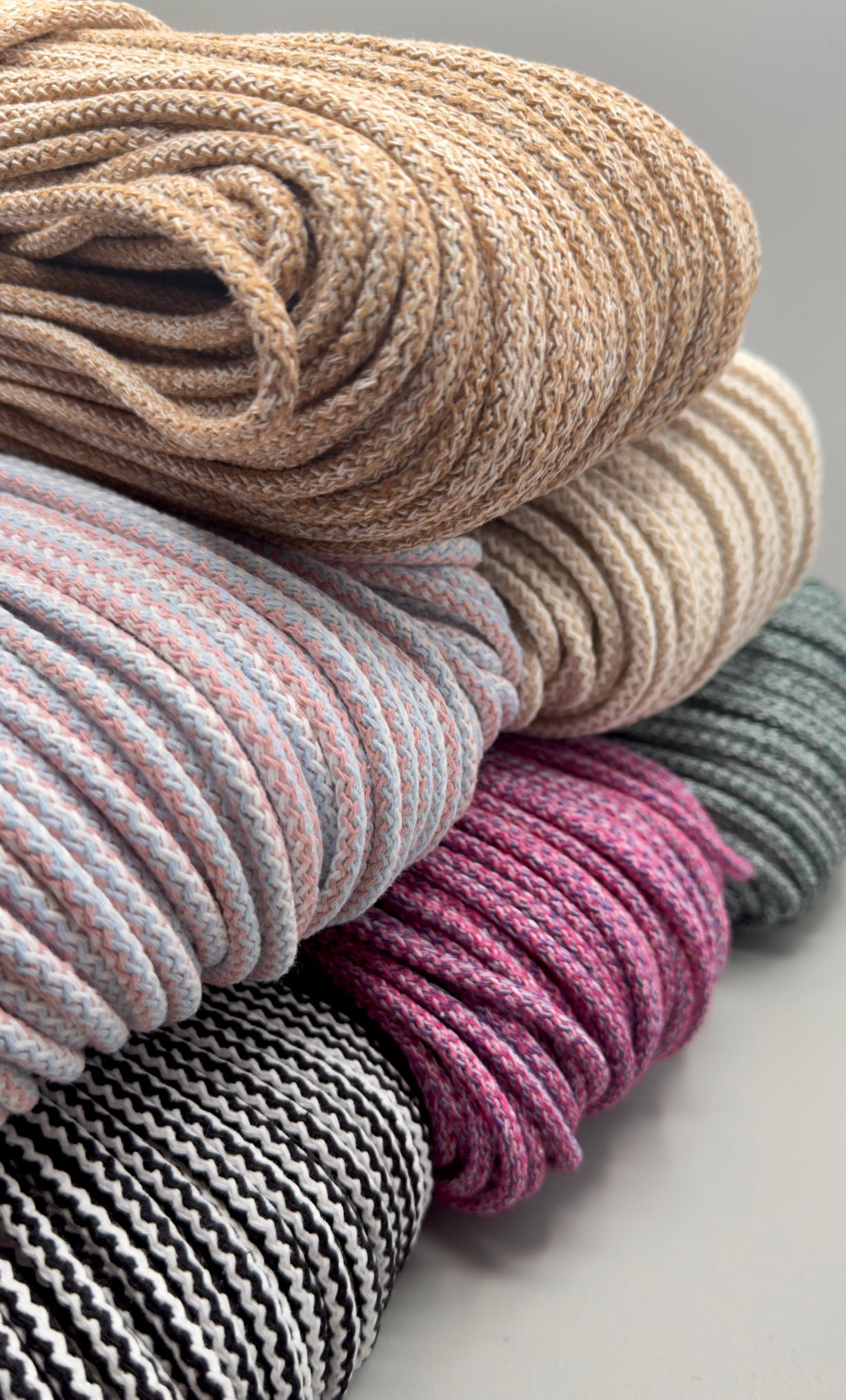 Corda intrecciata di alta resistenza, progettata specificamente per realizzare progetti con la macchina da cucire. Il suo spessore e la robustezza la rendono perfetta per cuciture a zig zag. Grazie alla sua fermezza, il prodotto finale mantiene una forma impeccabile. Queste qualità derivano da un'anima in fibre di poliestere extra resistenti aspetto fondamentale per ceste, ciotole e borse. La parte esterna della corda è realizzata in cotone riciclato, conferendole una texture morbida e piacevole al tatto, oltre alla flessibilità necessaria per la cucitura a zig zag. Il prodotto finito è lavabile a mano.