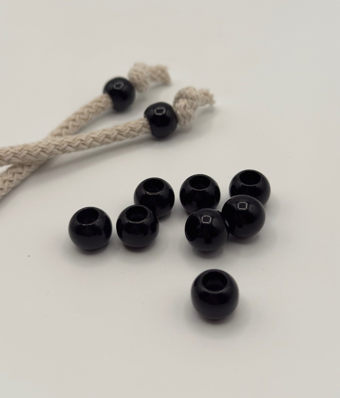 Perle nere in plastica.